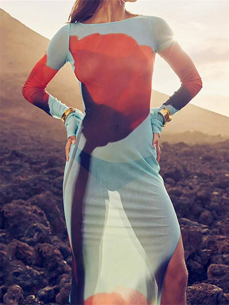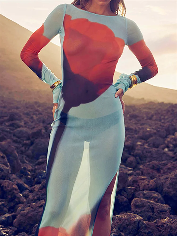 Women See Through Mesh Long Dress